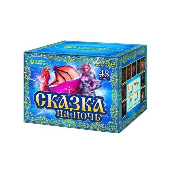 - Фейерверк 48 залпов, калибр 1 дюйм (25 мм), высота до 25 м, разлет в небе до 25 м.